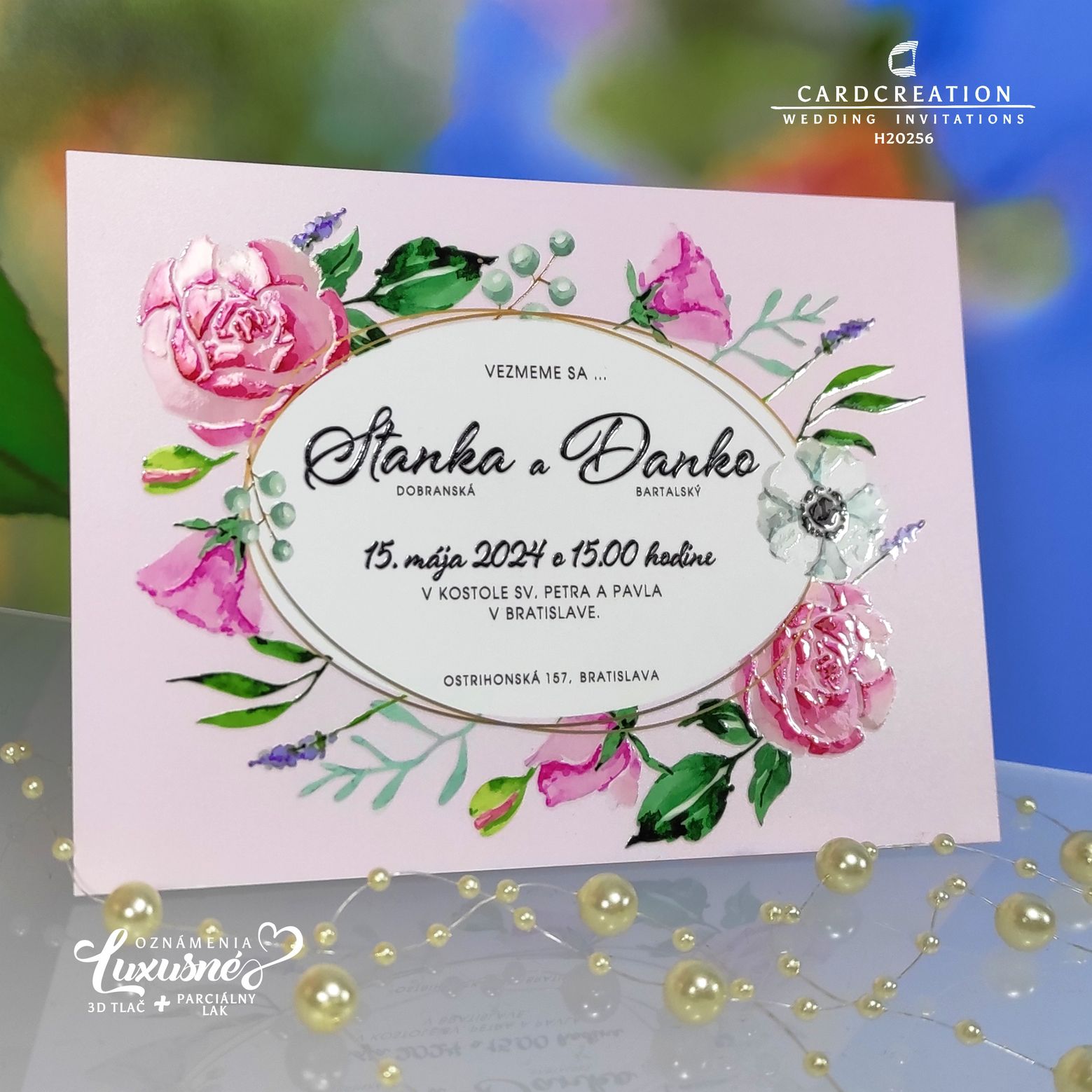 Moderné svadobné oznámenie H20256 vyniká krásnymi sýtymi farbami a vystúpenou tlačou. Je tlačené vo vysokej fotokvalite s dôrazom na detail. Pri prechode palcom po Vašich textoch budete môcť cítiť, že farba je vystúpená. Oznámenie pôsobí 3d efektom. V cene oznámenia je zmena mien, dátumu a miesta konania svadby. Zmeny textu alebo písma sú možné, budú však spoplatnené. Vytvoríme Vám aj vlastný grafický návrh, podrobný popis uveďte do správy, následne Vám zašleme cenovú kalkuláciu. K oznámeniu vám vieme vytlačiť v rovnakom dizajne aj pozvánky a samozrejme všetky ostatné svadobné tlačoviny. K oznámeniam si môžete vybrať aj Etikety na fľaše, nálepky na výslužky, obálky, poďakovania rodičom a všetky svadobné produkty v rovnakom designe. Minimálny počet oznámení na objednanie je 20 kusov.