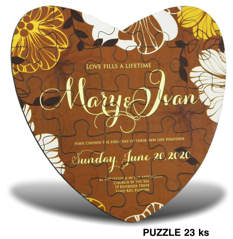 Svadobné oznámenie C14090A PUZZLE. Zabavte svojich najbližších svadobným puzzle v tvare srdca vo forme svadobného oznámenia. Môžete si zvoliť náročnosť puzzle (počet puzzle ) podľa toho komu ich posielate. Grafika Vám vyhotovíme my , alebo si ju môžete dodať sami. Je ľubovolná podľa Vášho návrhu.