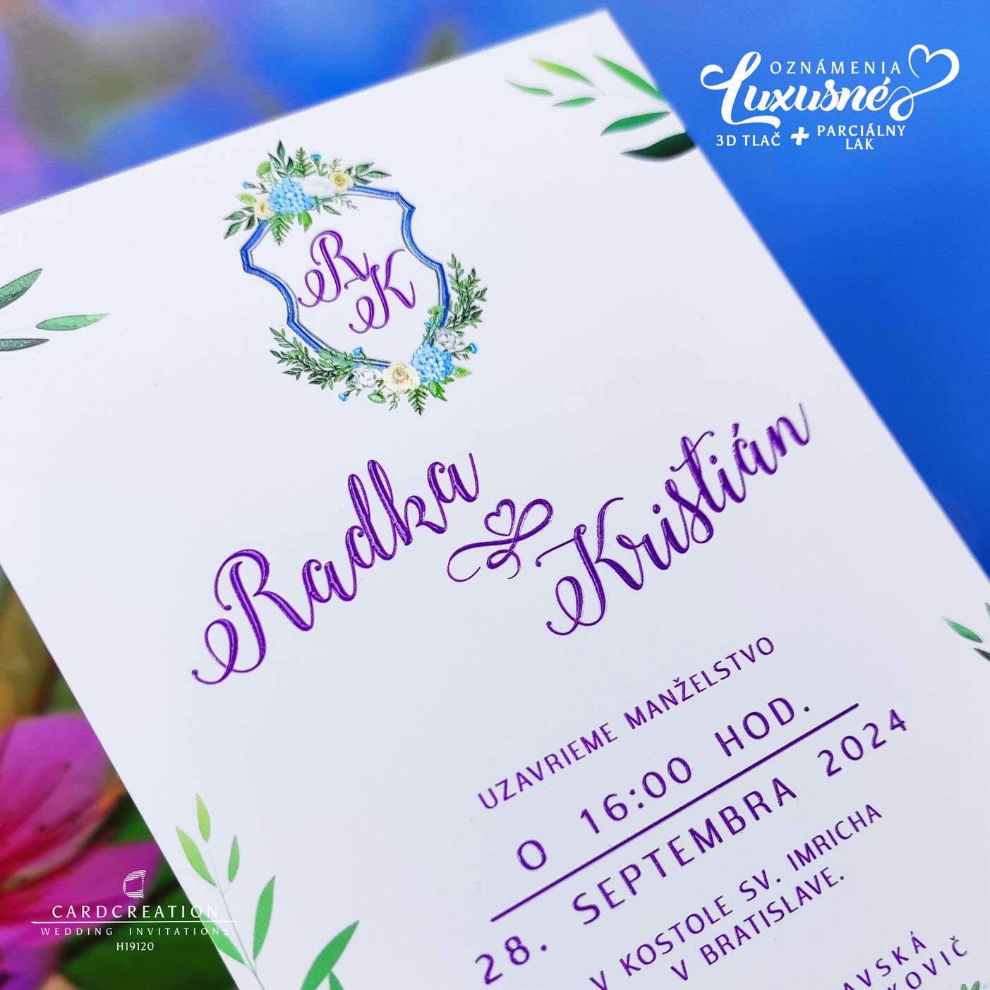 Nové svadobné svadobné oznámenie H19120 je vytlačené na bielom matnom papieri. Pre našich zákazníkov prinášame dokonalú tlač najvyššej kvality. Krásne farby CMYKLCLM + lak vytvárajú luxusné oznámenia , ktoré môžu byť Vaše. Zrealizujeme aj Vaše grafické nápady a predstavy. Oznámenia vieme vytlačiť na rôzne podklady ( sklo, plexi, drevo, kov a kartón na akékoľvek gramáže atď… Oznámenie H19120 má rozmer 100×150 mm. K oznámeniu dodávame všetky ostatné tlačoviny na Vašu svadbu ( menovky, menu, zasadací poriadok, etikety, visačky , knihy hostí , atď …… )