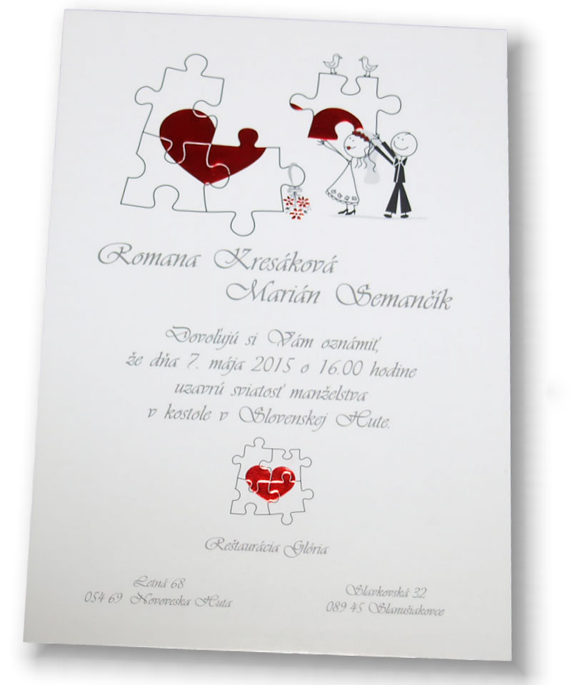 svadobné oznámenia v rovnakom grafickom štýle.