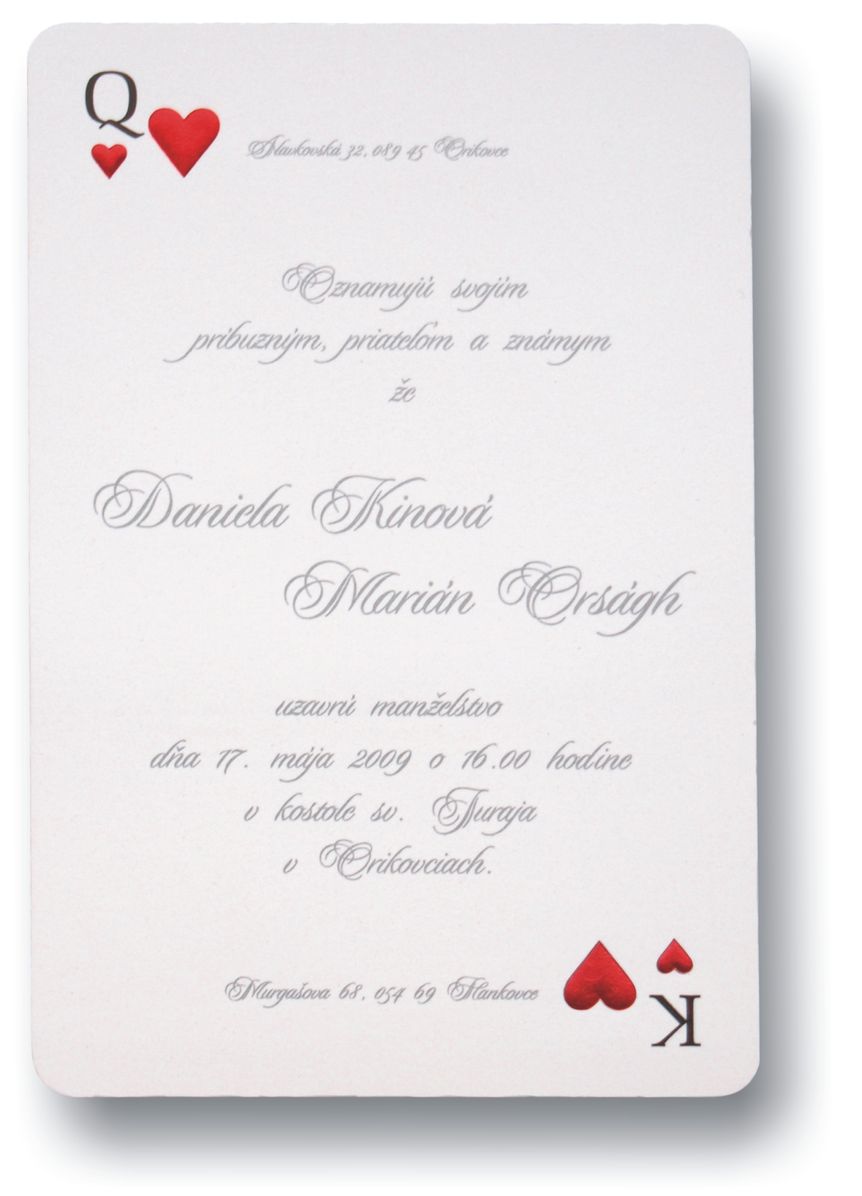 Vzorka: Informujte sa o možnosti o zaslanie vzorky svadobného oznámenia, vzorku svadobného oznámenia je možné zaslať len k vybraným typom svadobných oznámení.
