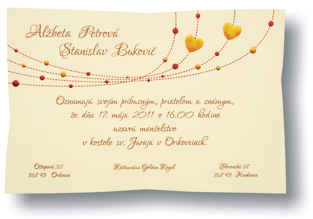 Všetky možnosti a parametre svadobného oznámenia je možné uviesť a doplniť aj pri emailovej komunikácii počas schvaľovania grafického návrhu.