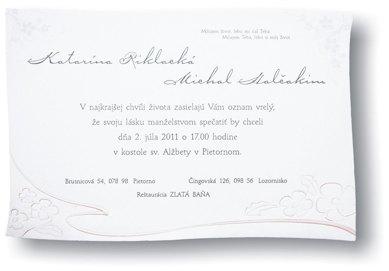 Text pozvánky k svadobnému stolu.