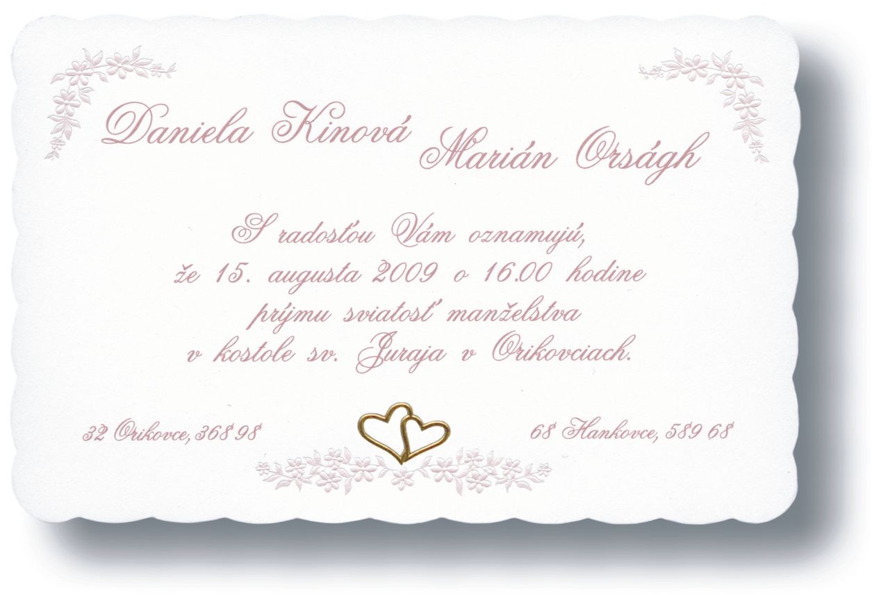 Všetky možnosti a parametre svadobného oznámenia je možné uviesť a doplniť aj pri emailovej komunikácii počas schvaľovania grafického návrhu.