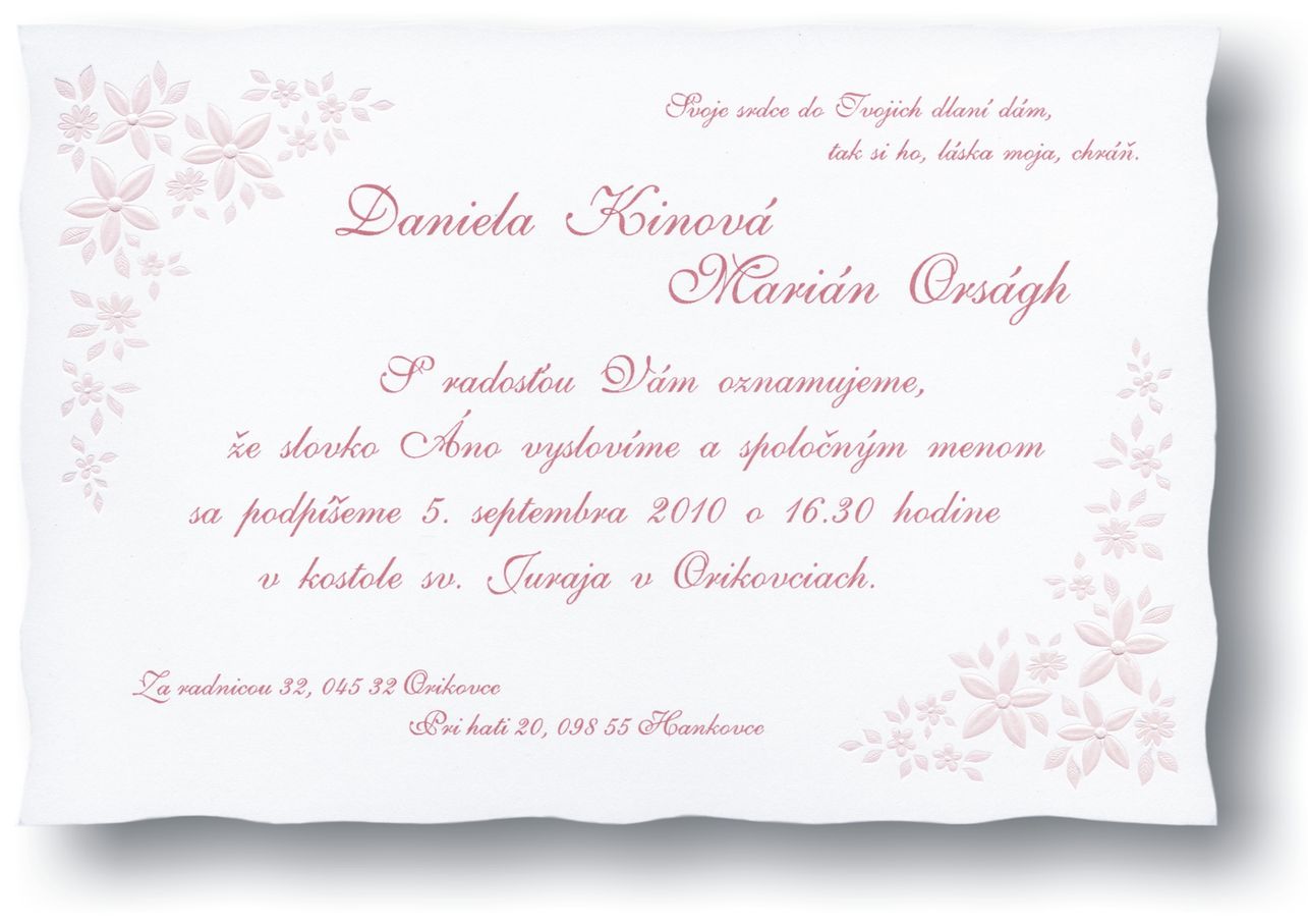Všetky možnosti a parametre svadobného oznámenia je možné uviesť a doplniť aj pri emailovej komunikácii počas schvaľovania grafického návrhu.