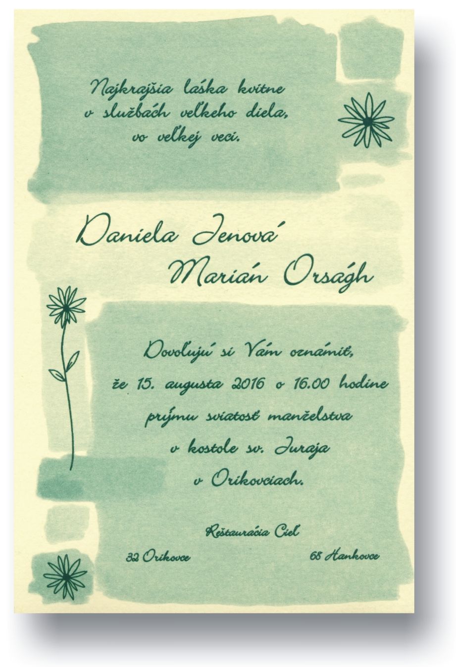 Všetky možnosti a parametre svadobného oznámenia je možné uviesť a doplniť aj pri emailovej komunikácii počas schvaľovania grafického návrhu.