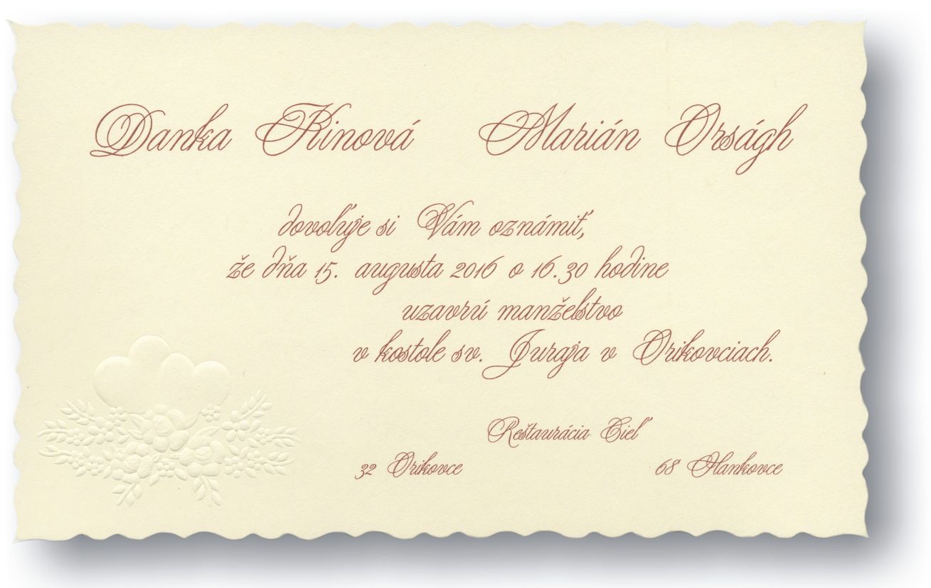 Všetky možnosti a parametre svadobného oznámenia je možné uviesť a doplniť aj pri emailovej komunikácii počas schvaľovania grafického návrhu.
