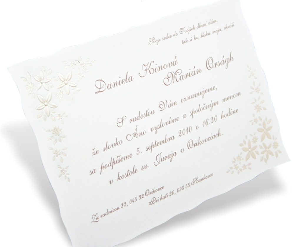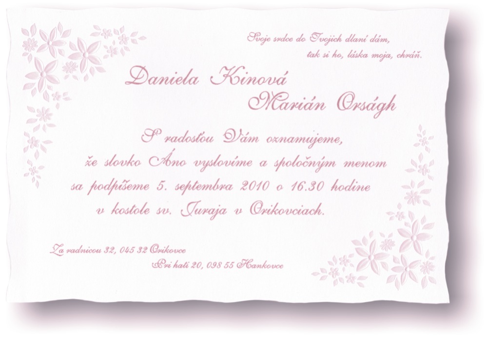 Všetky možnosti a parametre svadobného oznámenia je možné uviesť a doplniť aj pri emailovej komunikácii počas schvaľovania grafického návrhu.