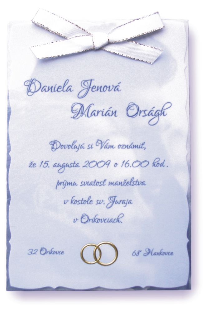 Všetky možnosti a parametre svadobného oznámenia je možné uviesť a doplniť aj pri emailovej komunikácii počas schvaľovania grafického návrhu.