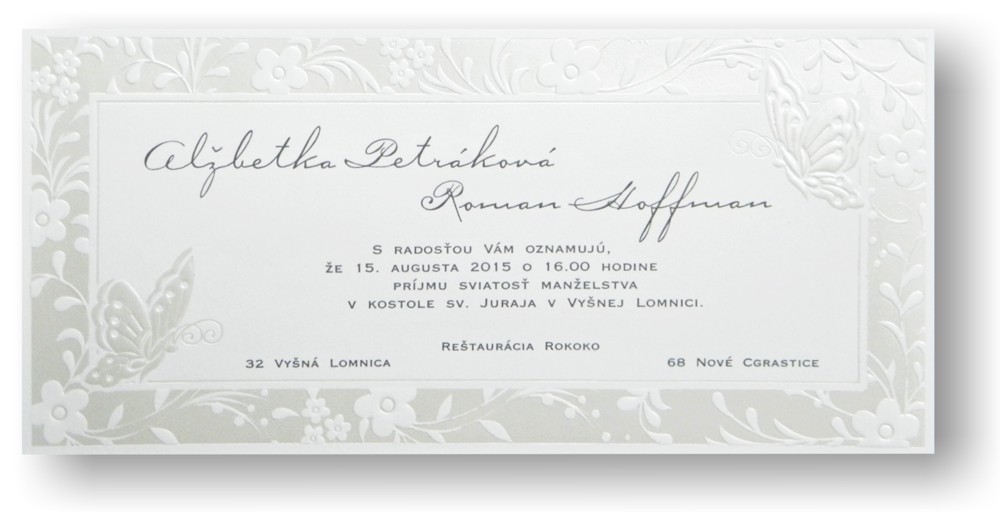 -oznámenie s 3D ražbou perletovou fóliou