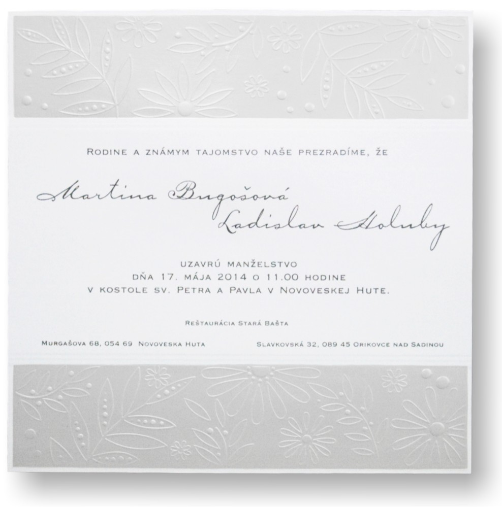 Všetky možnosti a parametre svadobného oznámenia je možné uviesť a doplniť aj pri emailovej komunikácii počas schvaľovania grafického návrhu.