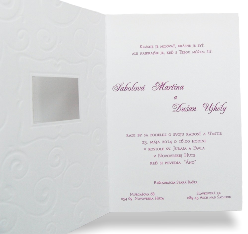 -otváracie oznámenie s tvarovým výsekom