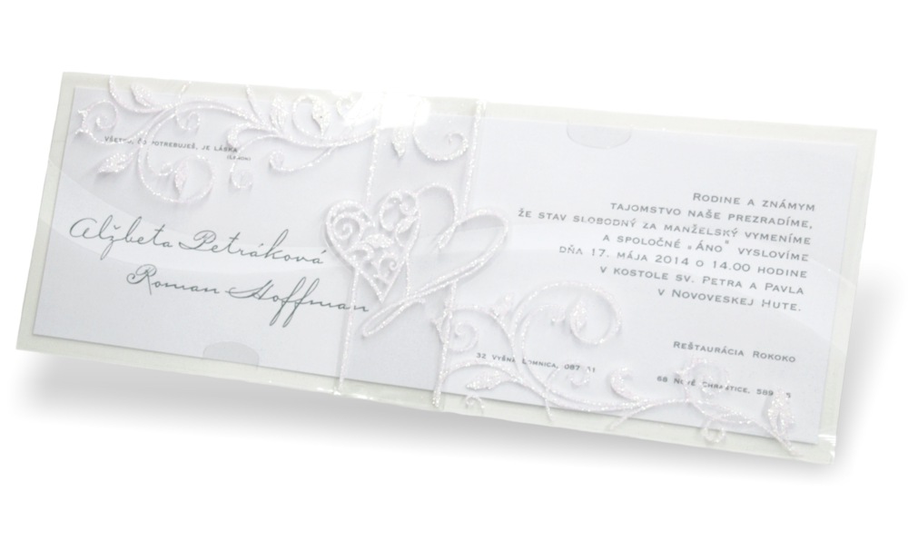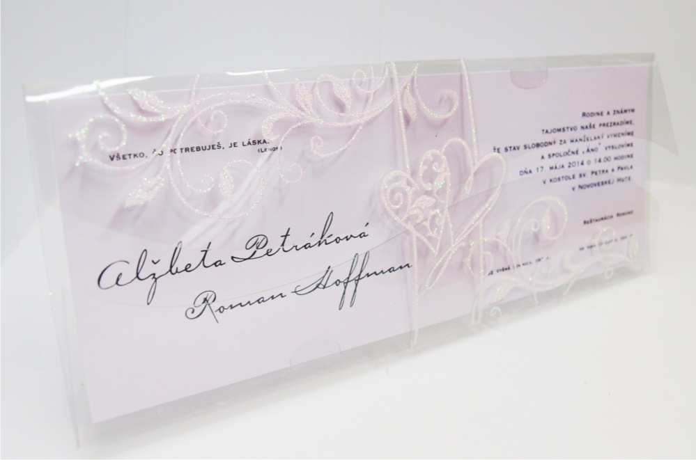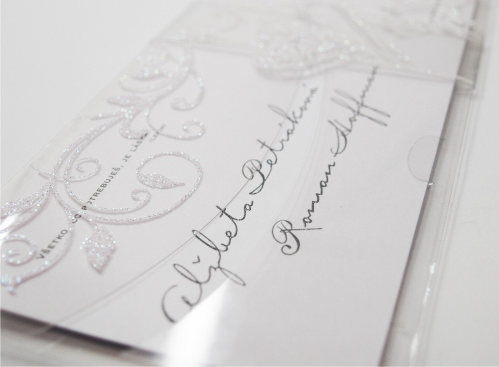 -texty oznámenia tlačené efektnou termogravúrou