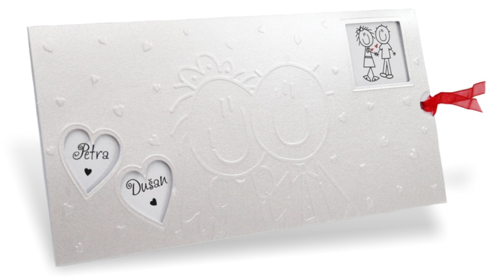 srdiečok metalickou fóliou a ofsetovou potlačou +červená stuha