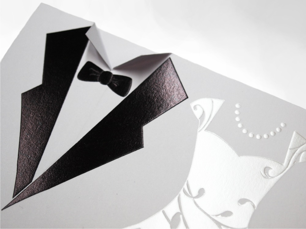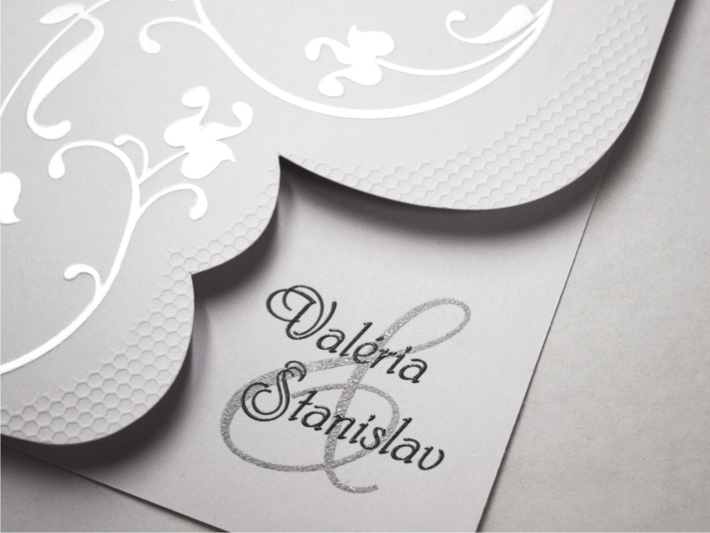 potlačeného čiernou lesklou termogravúrou + 3D ražba