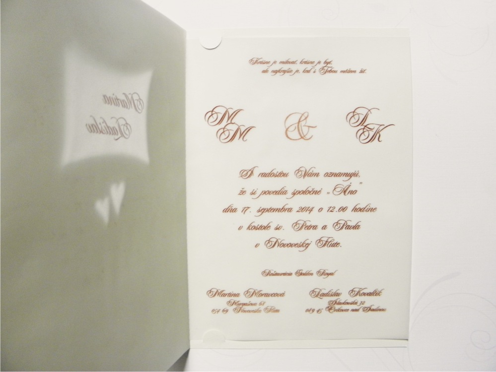 -obal oznámenia s 3D ražbou+ potlač termogravúrou