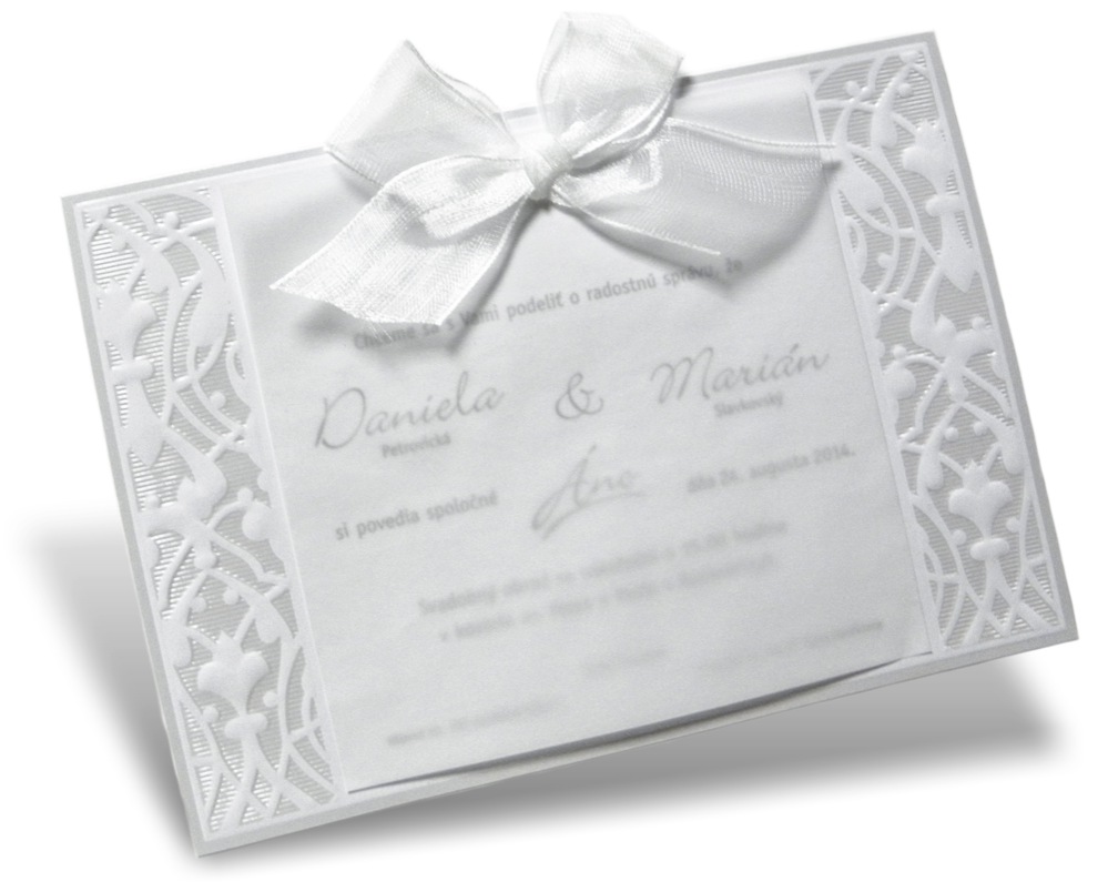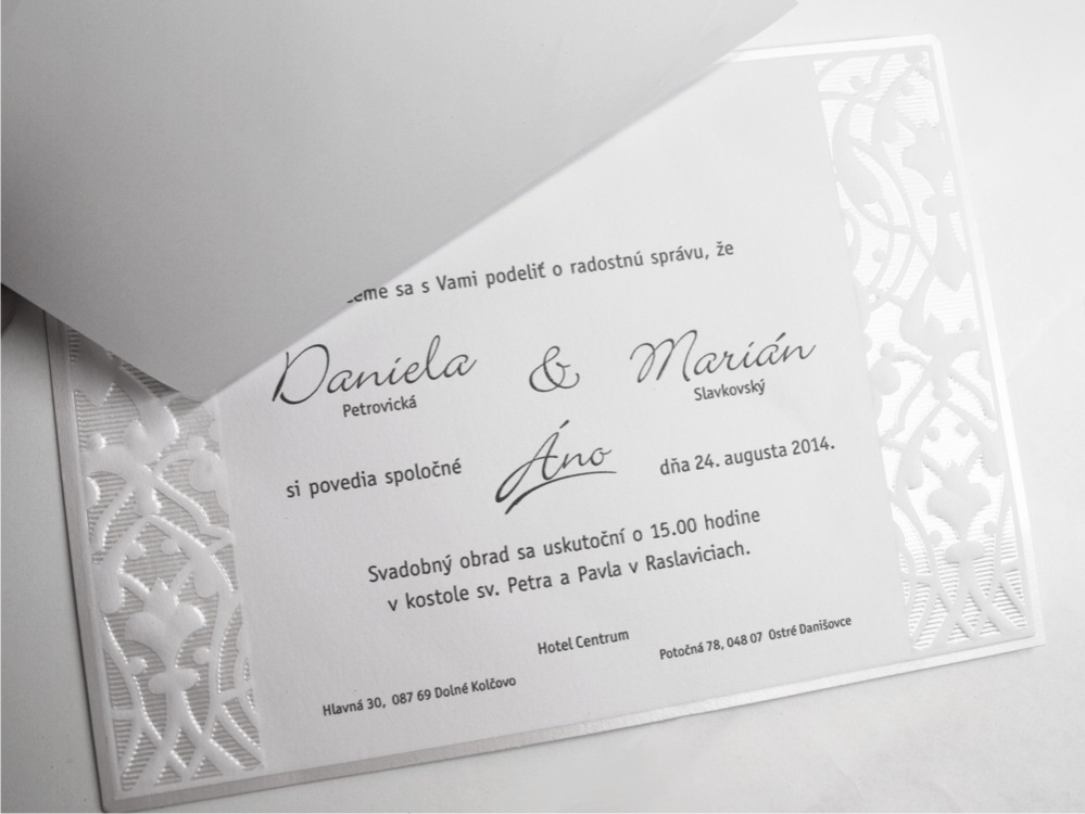 -oznámenie z bieleho papiera s 3D ražbou a