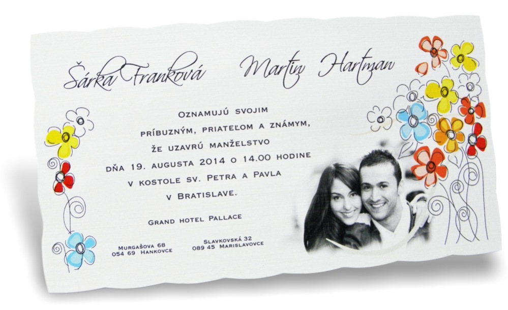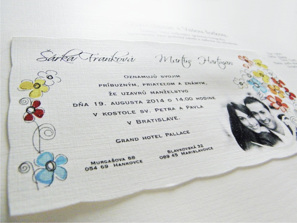 -texty tlačené efektnou termogravúrou dodávajú oznámeniu
