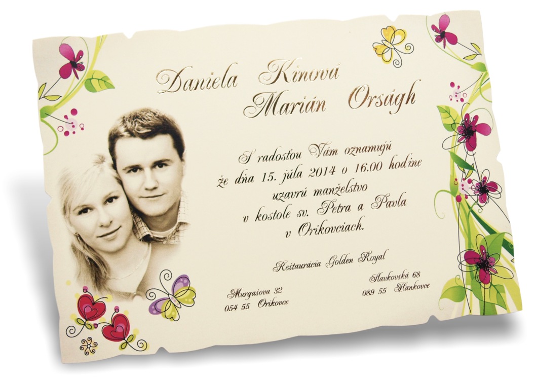 -oznámenie s vlastnou fotkou snúbencov