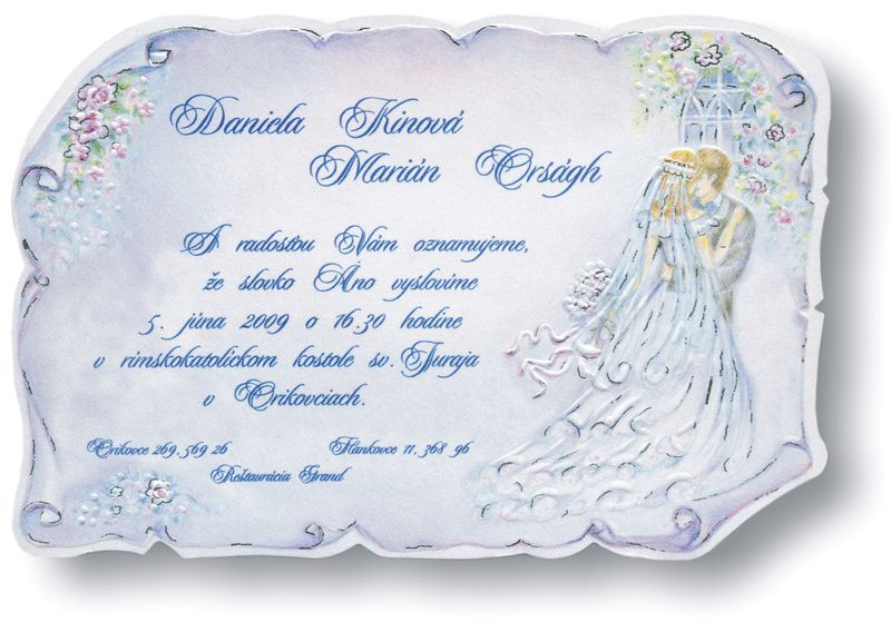 Všetky možnosti a parametre svadobného oznámenia je možné uviesť a doplniť aj pri emailovej komunikácii počas schvaľovania grafického návrhu.